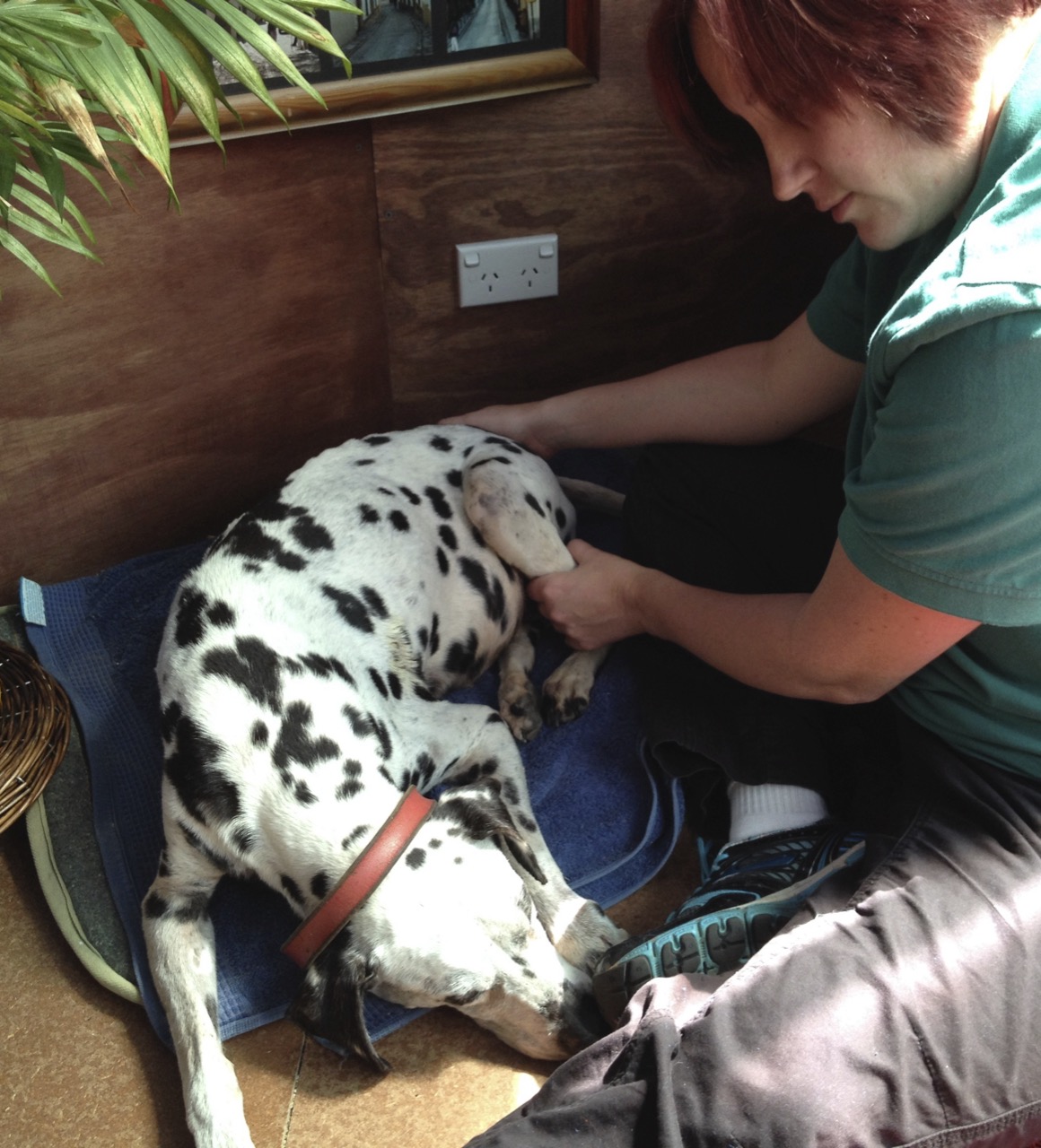 Some of the dogs animal therapist Kerry Durrand treats need a little time to adjust to the idea of having a massage, but once they’re sold on it, it’s pretty obvious, says Durrand. Some will extend their leg and turn around a little to signal what’s working for them or what their requirements are. Others lick their lips. And some of them plain doze off…
